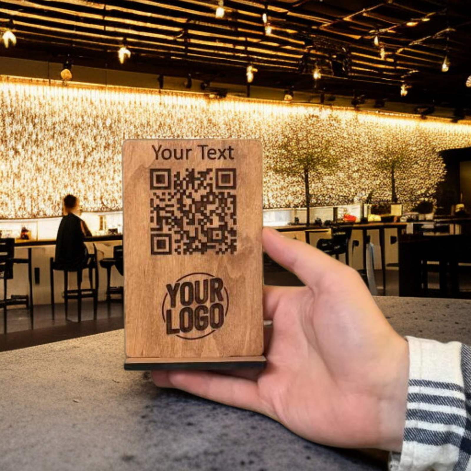Premium Holz QR-Code Tischaufsteller – stilvoll, langlebig & personalisierbar