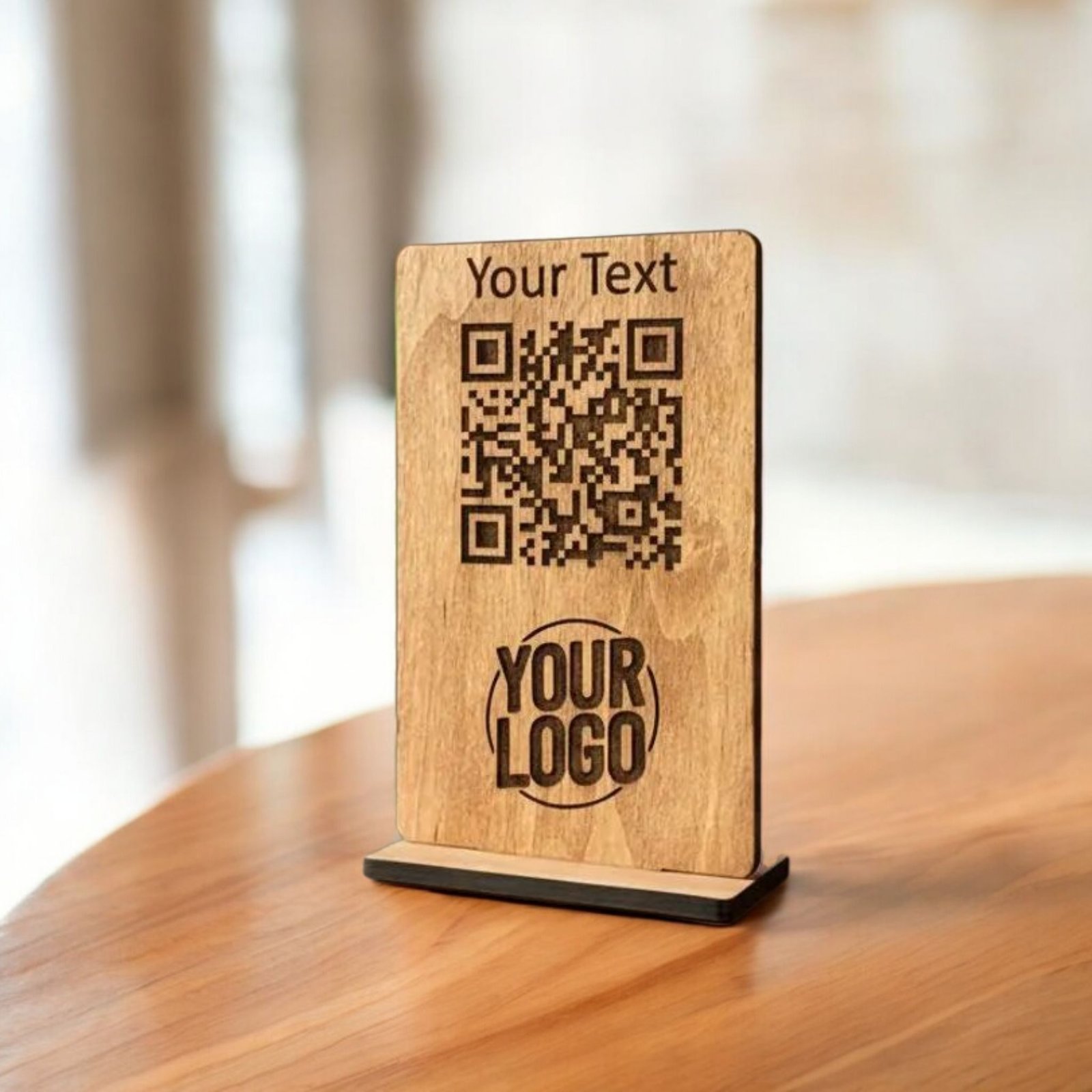 Holz QR-Code Schild für Tische – mit Logo & Text personalisierbar
