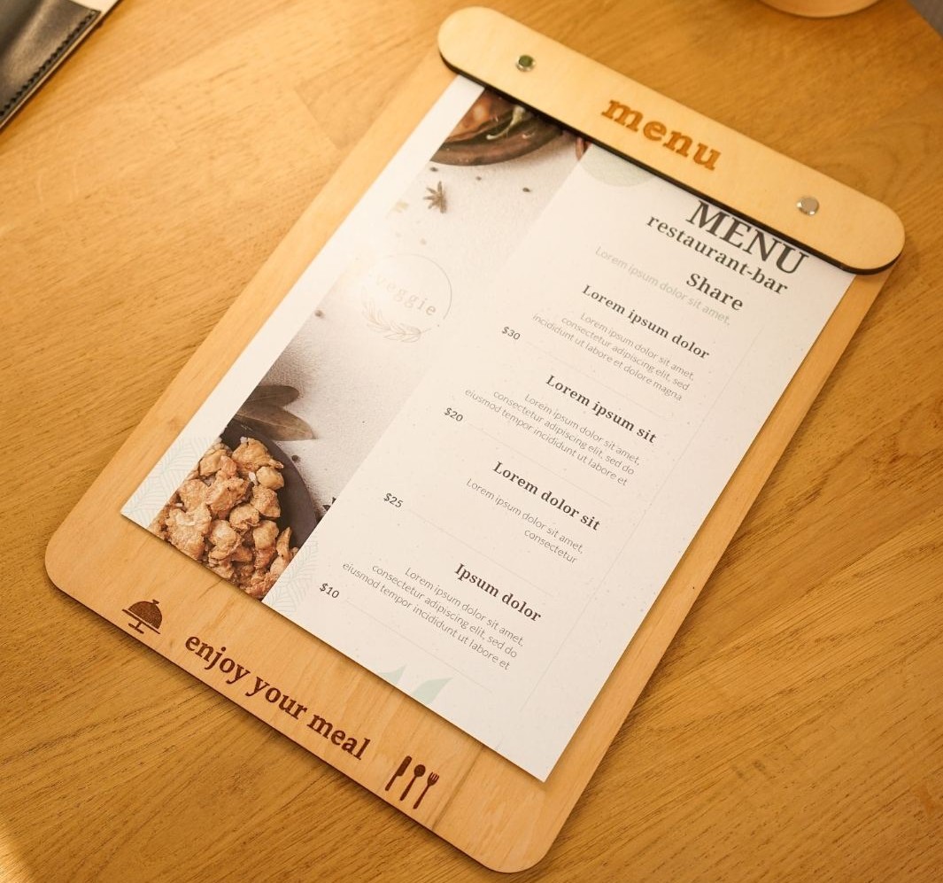 Speisekarte aus Holz personalisiert, Restaurant, Bar, Hotel – Gastronomie DIN A4